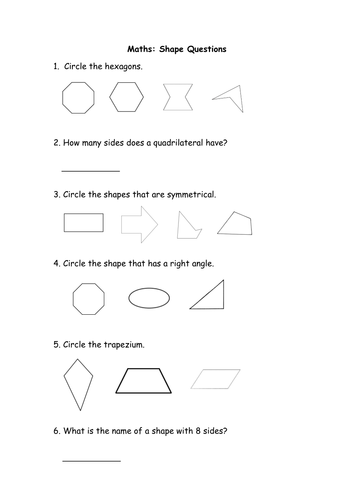 math worksheets for kindergarten shapes - GenesisFerrellweb We love math worksheets and we know your kids will too. These worksheets teach shape recognition with simple shapes such as circles squares and triangles as well as more complex shapes such as hearts trapezoids octagons hexagons and more. The following worksheets involve using the basic skill of counting with numbers up to 25.