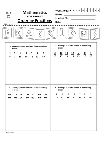 Ordering Fractions Worksheet Download | Free - Distance Learning ... The best source for free math worksheets. Printable or interactive. Easier to grade, more in-depth and 100% FREE! Kindergarten, 1st Grade, 2nd Grade, 3rd Grade, 4th Grade, 5th Grade and more! ... Ordering Fractions Worksheet Download. Want to help support the site and remove the ads? Become a patron via patreon or donate through paypal.
